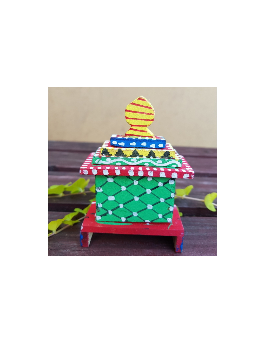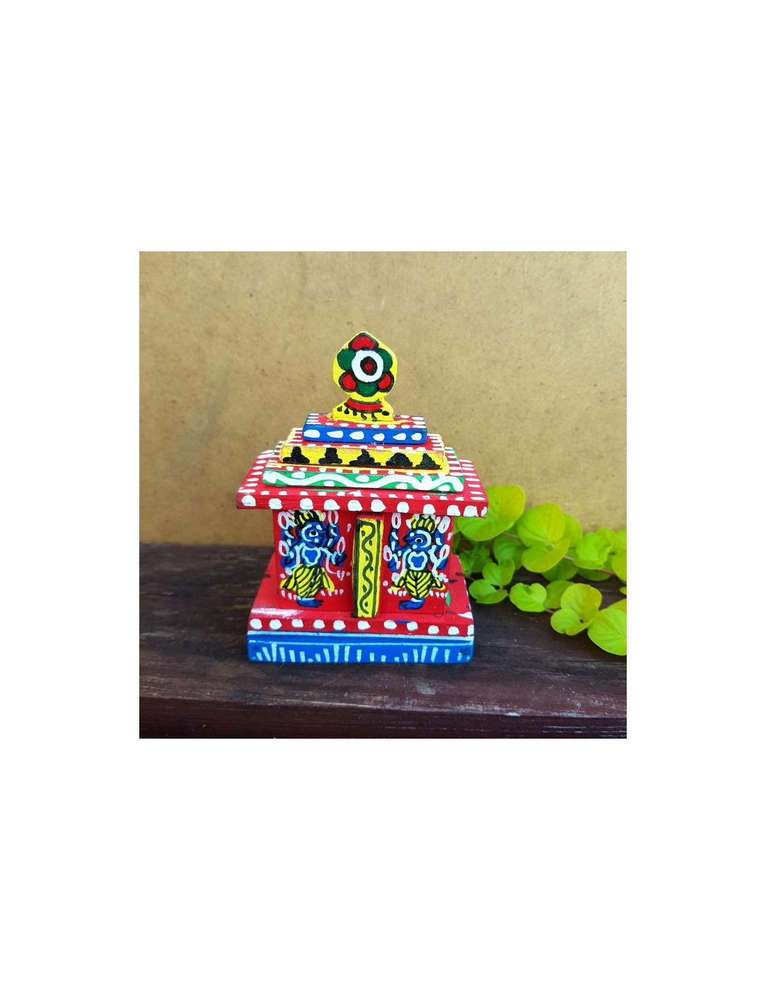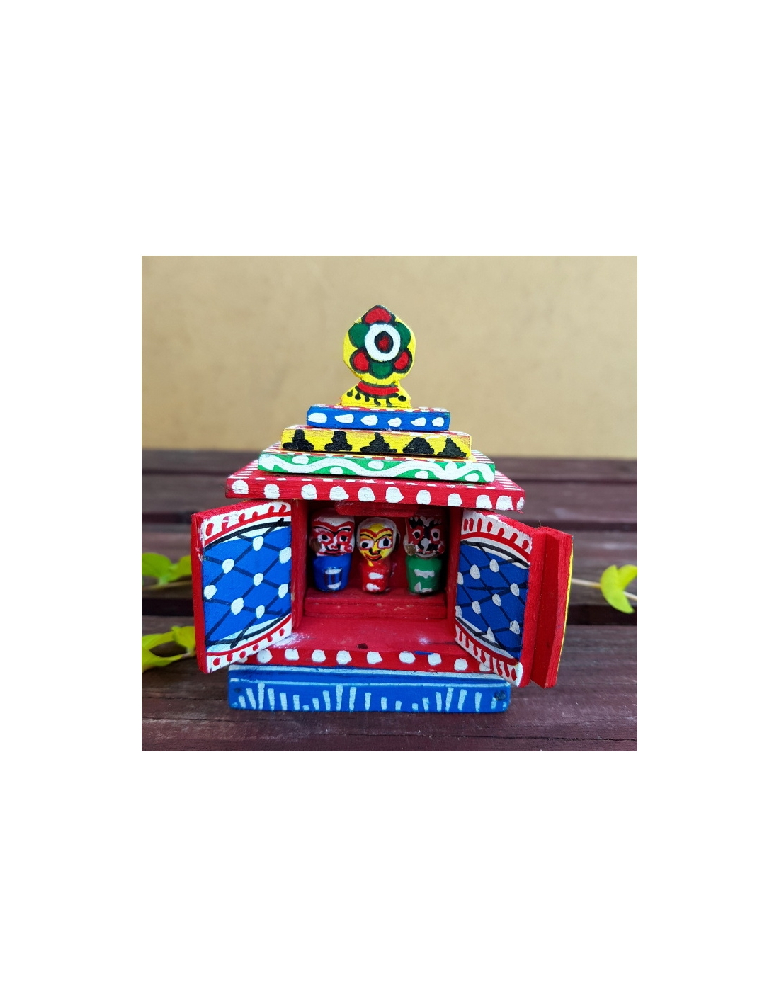 Ručně malovaný a vyráběný oltář s božstvy Jagannátha, umělecké dílo.