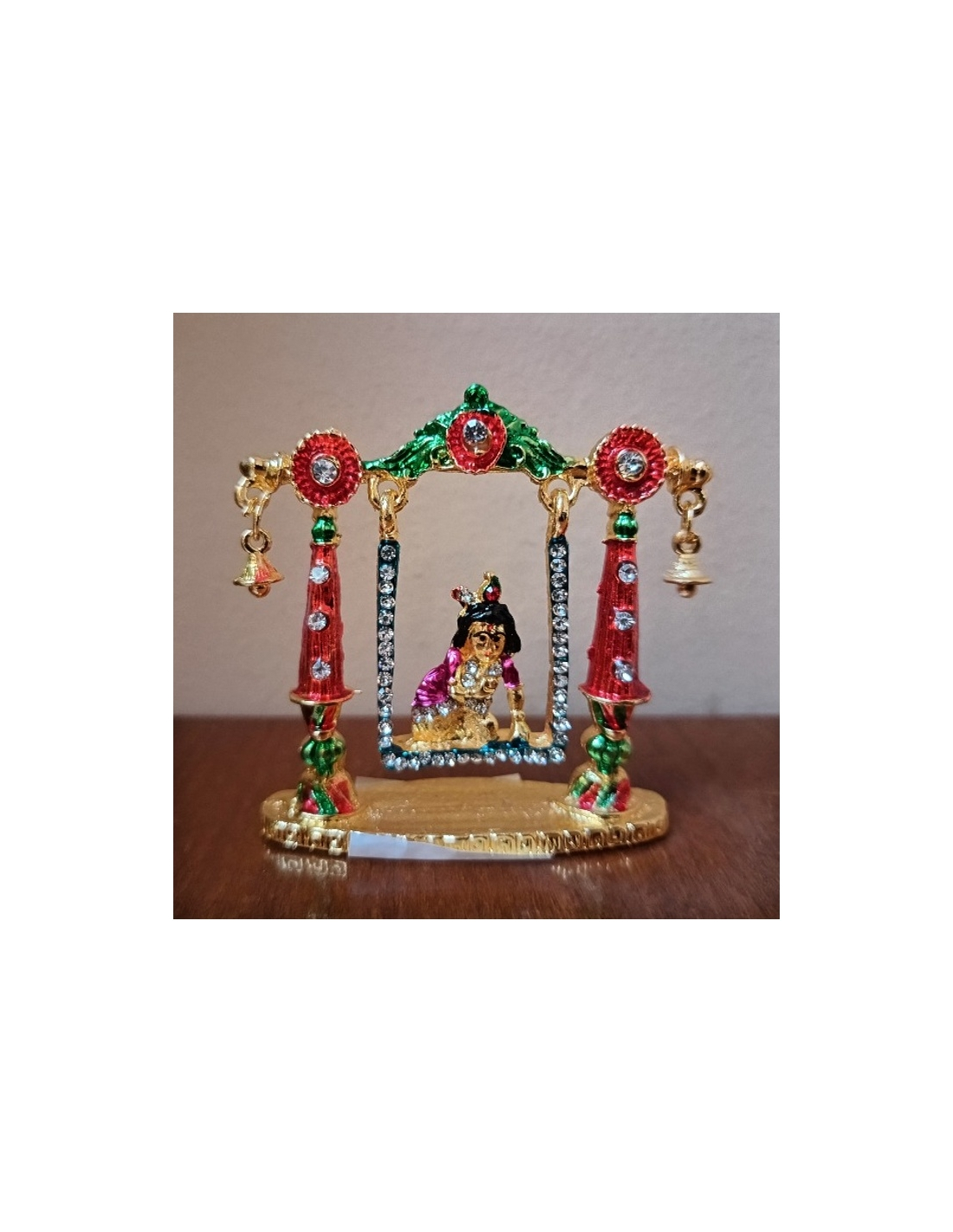 Murti malého Krišny z pozlaceného kovu.