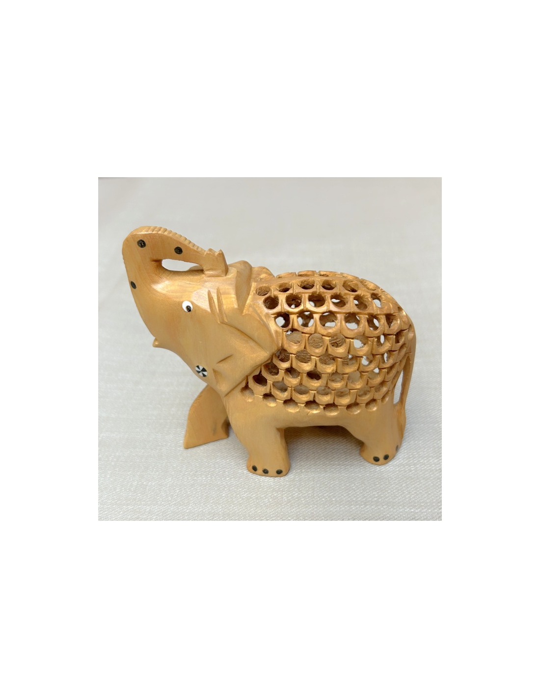 Tradiční vyřezávaný slon, dutý s malým slonem v břiše. Speciální vyškrabovací technika.