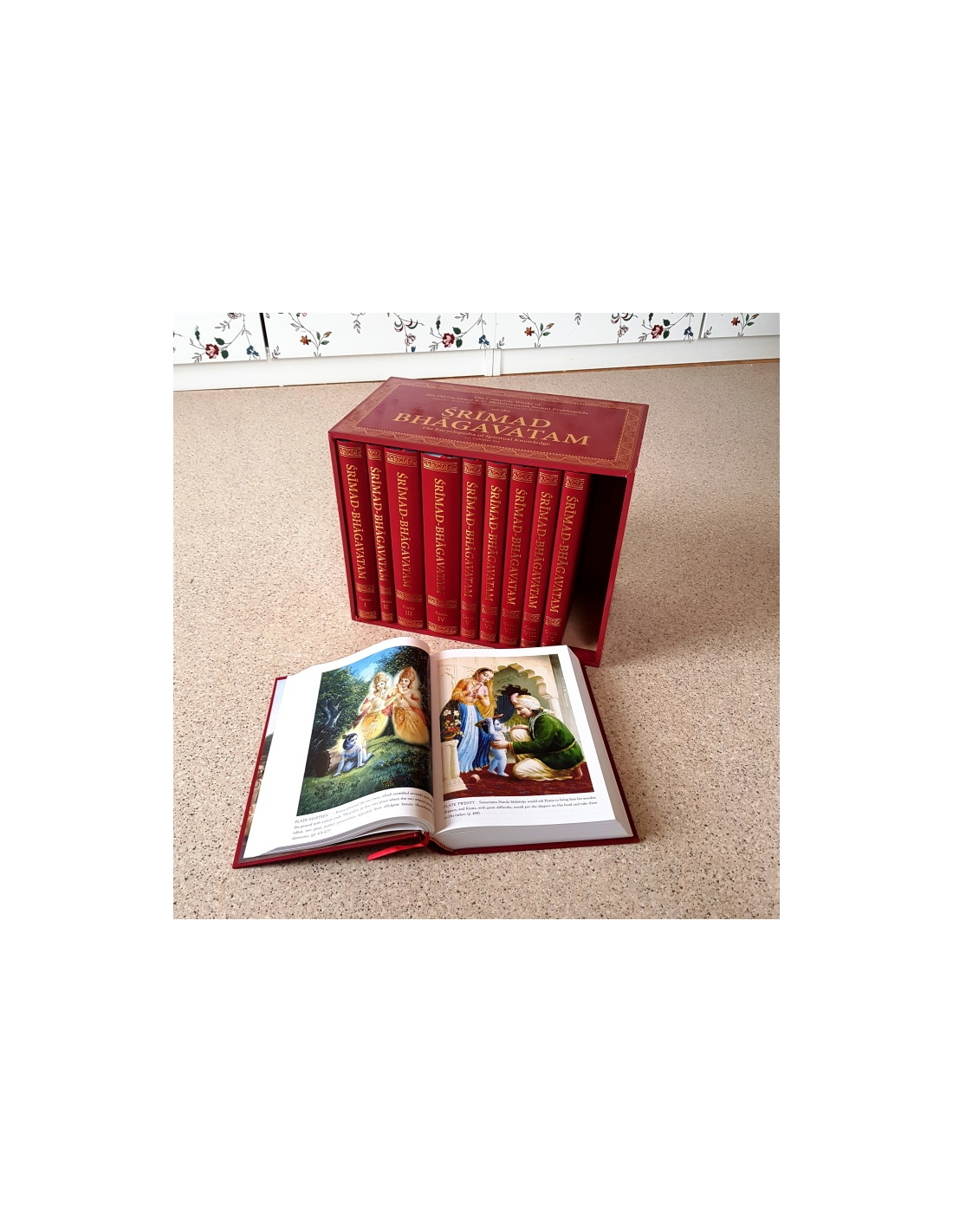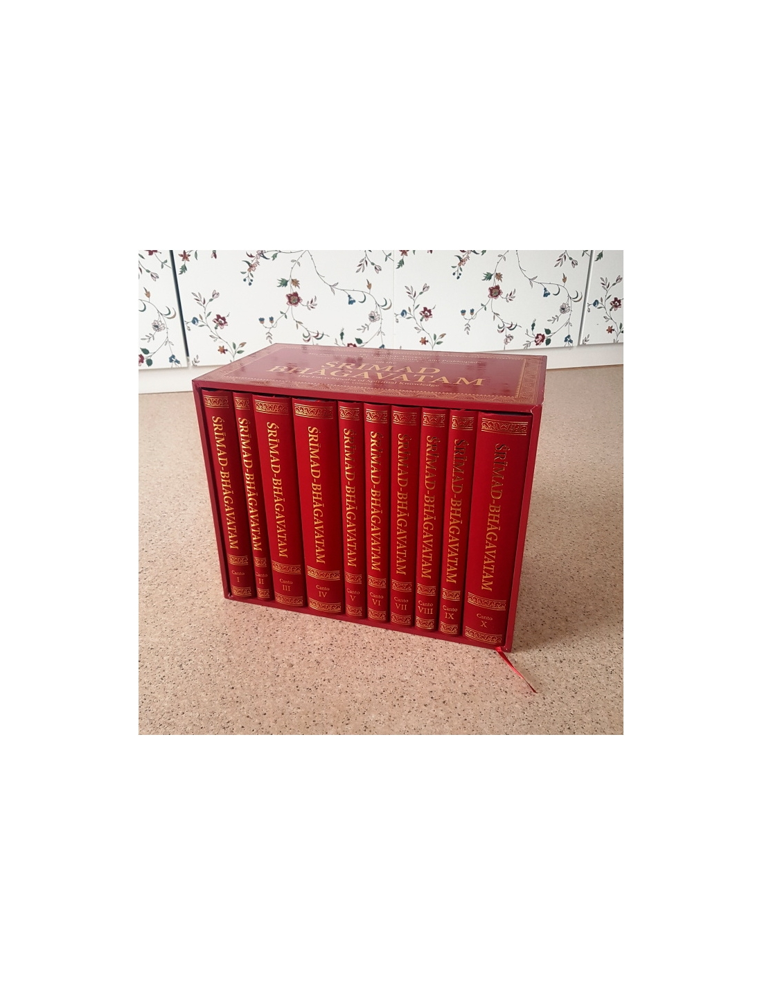 Anglický set Šrímad Bhágavatam v luxusní dárkové kazetě. 10 knih v sadě. Naleznete v něm nepřeberné množství informací o téměř všech aspektech indické védské civilizace. Studenti literatury v něm odhalí mistrovské dílo vznešené poezie. Zájemcům o psychologii nabízí pozoruhodné pohledy na povahu vědomí a lidské chování a hledačům duchovní podstaty dává vedení k poznání vlastního já a realizaci Absolutní Pravdy.