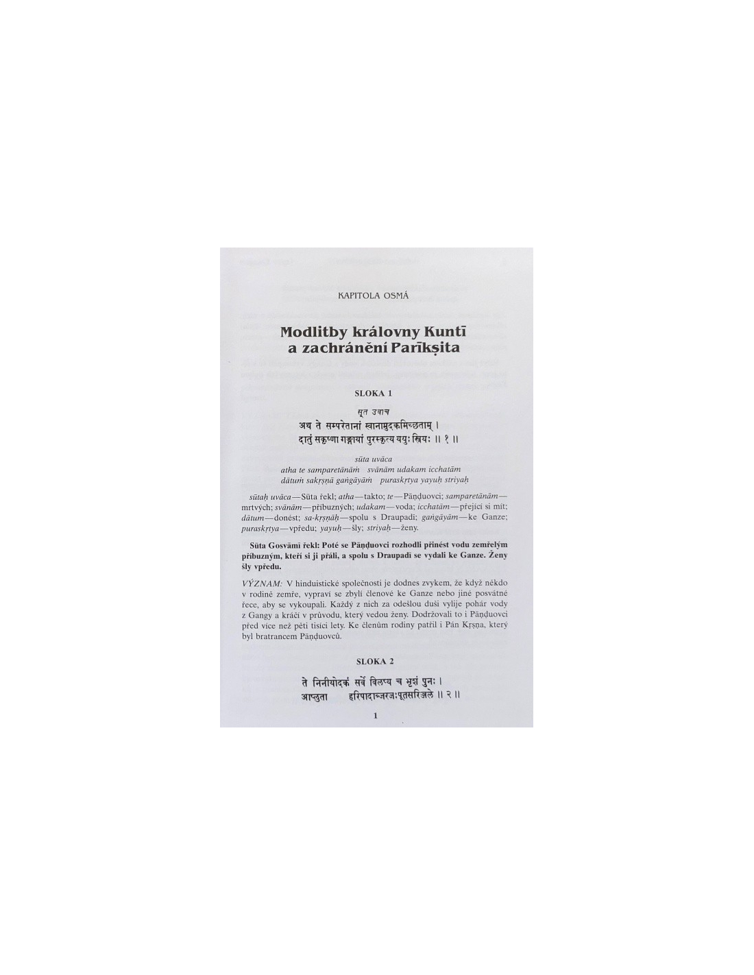 Druhý díl prvního zpěvu Šrímad Bhágavatamu mapuje dramatické události spojené s Mahárádžem Paríkšitem, jeho záchranou v lůně matky poté, co byl napaden ničivou brahmástrou (jadernou zbraní). Kromě toho text odhaluje poutavé příběhy, které se nachází uvnitř rozsáhlého eposu Mahábharáta, a věnuje pozornost samotnému zrození Mahárádže Paríkšita. Zde se čtenářům otevírá brána do fascinujícího světa starověké indické literatury, zobrazující dramatické situace, jež formovaly osudy klíčových postav. Toto dobrodružství také poskytuje příležitost postupně proniknout do hloubky a významu Bhágavatamu, tohoto cenného literárního díla, vytvořeného na základě těchto vzrušujících událostí.