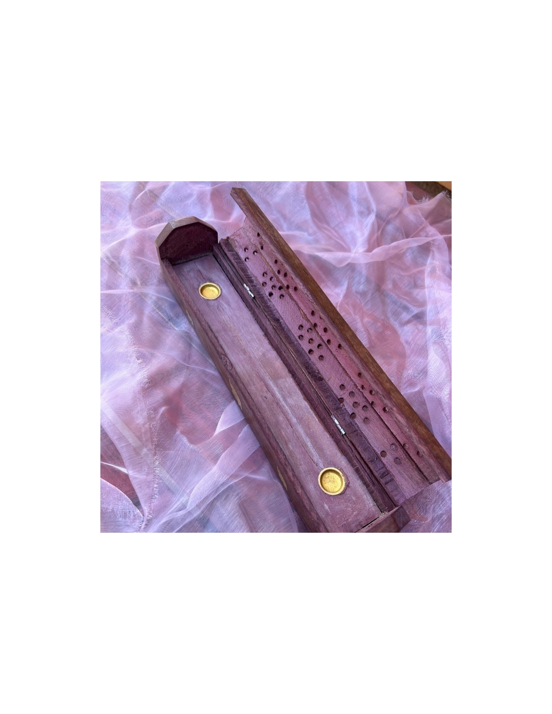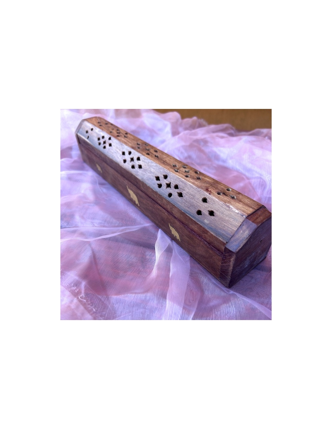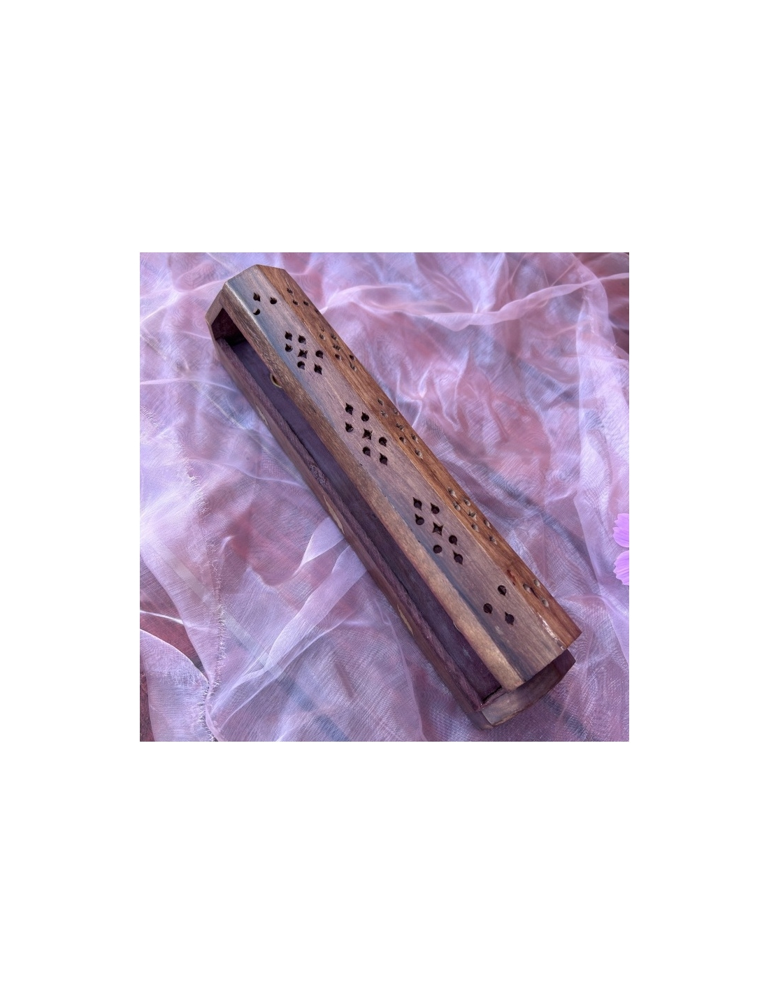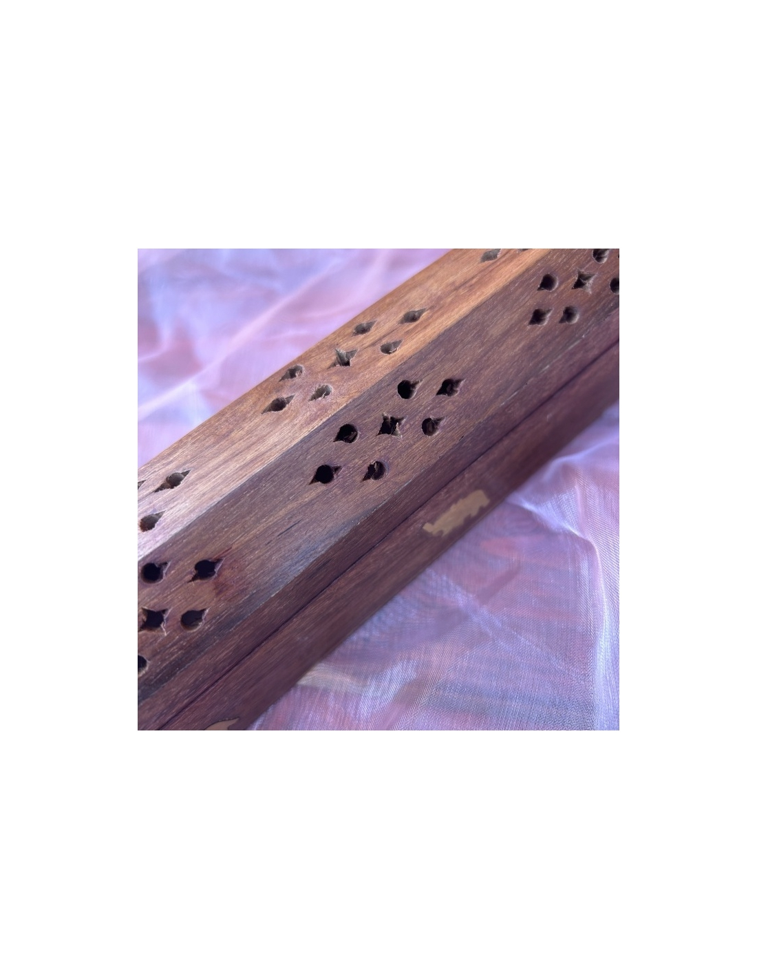 Dřevěný box jako stojan na tyčinky a františky s úložným prostorem ve spodní části. Umělecká práce, vyřezávaný z hnědého dřeva.