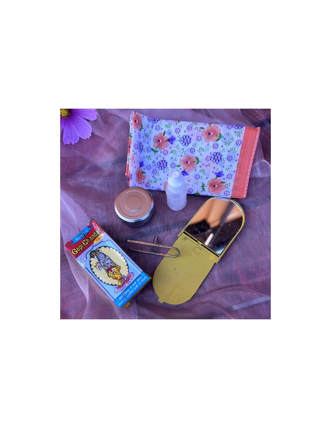 Tilak set - posvátný jíl z Gangy, značíme jím různé části těla pro očištění.