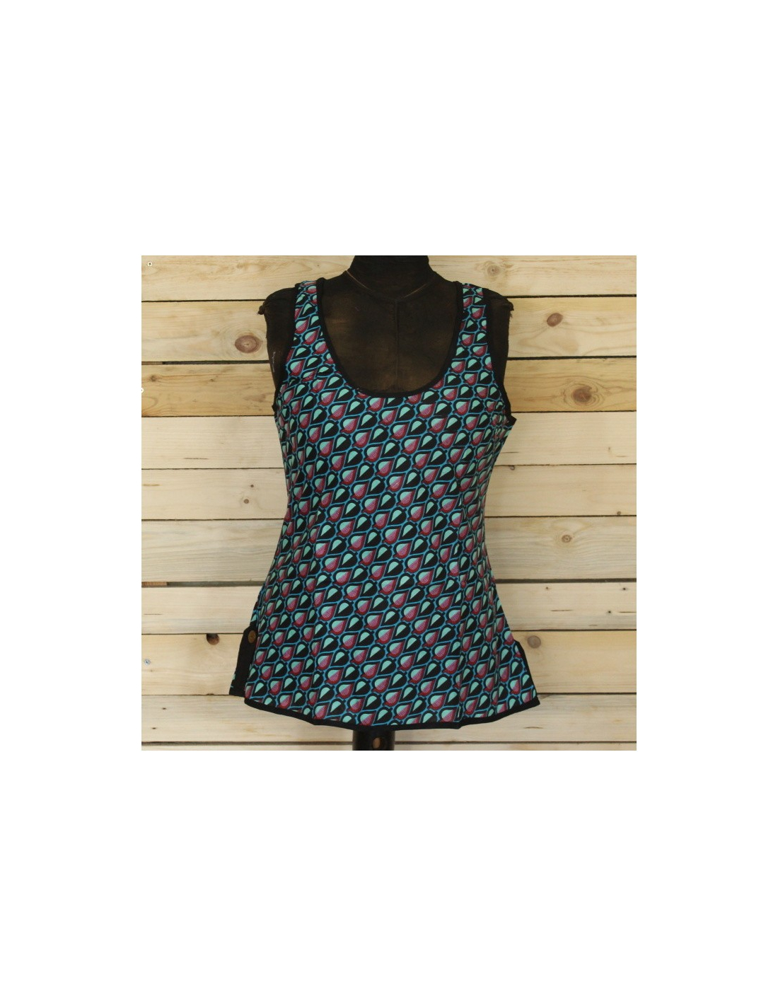 Bavlněný top s potiskem vzoru lístků. K výběru dle barvy obruby a fota.