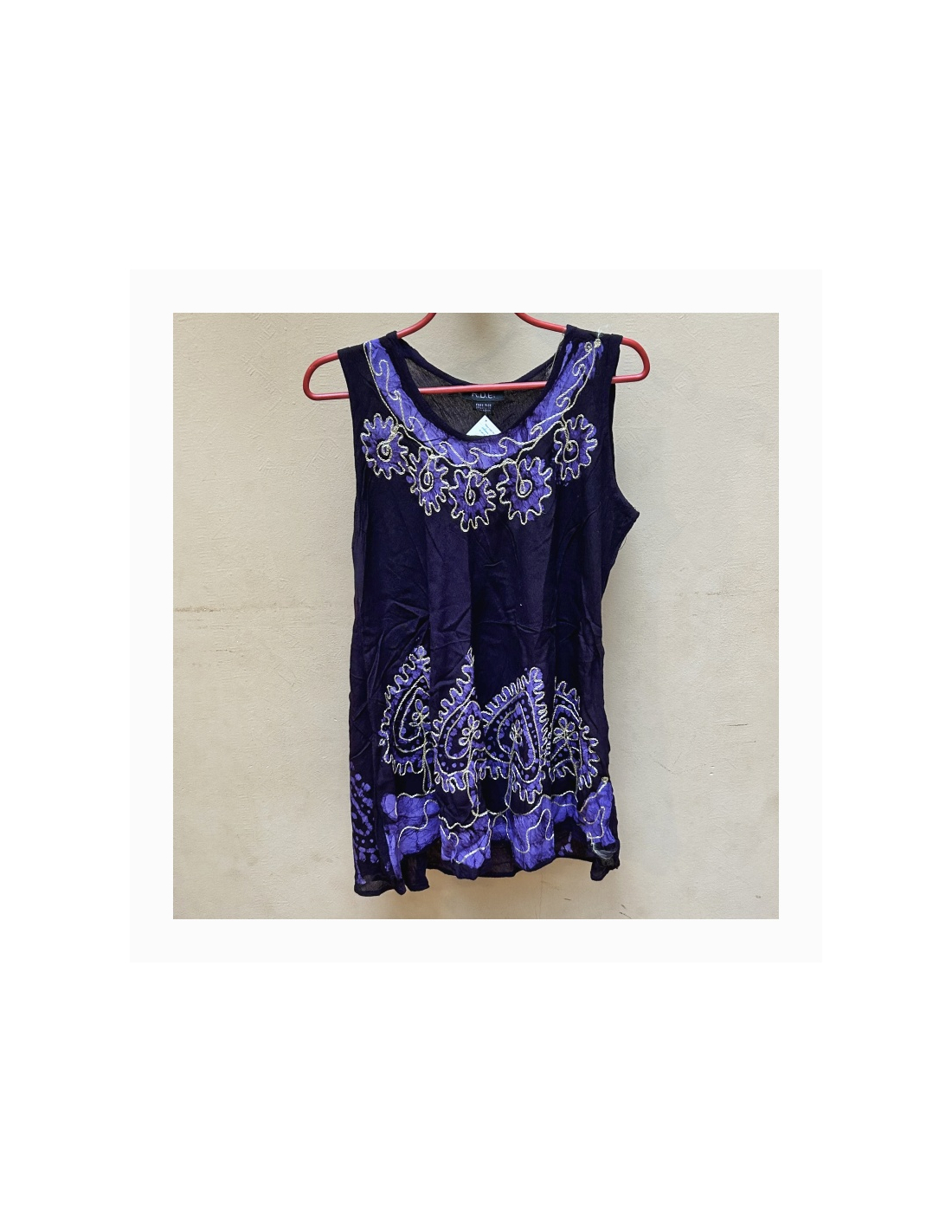 Letní top z batikované bavlny jemně vyšívaný. Pružná látka, přizpůsobí se postavě.