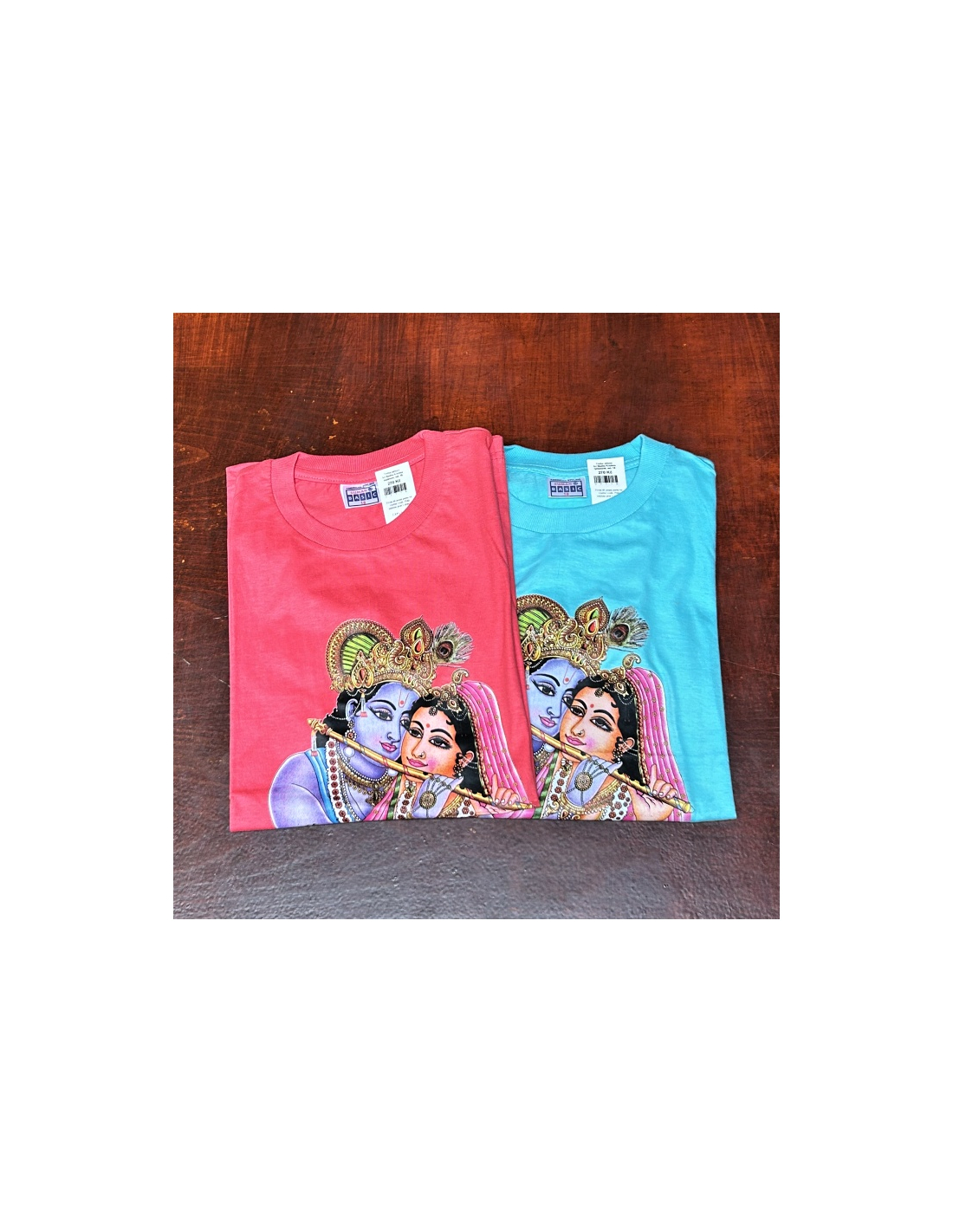 Tričko z bavlny s potiskem obrázku Sri Radha Krishna. Pro dítě nebo drobnějšího dospělého.