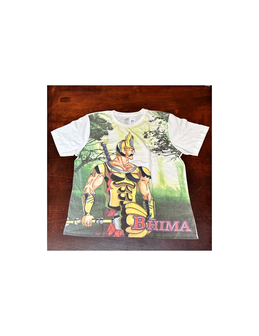Bavlněné tričko s potiskem Bhímy jako bojovníka na předním díle. Měkká bavlna, krátký rukáv.