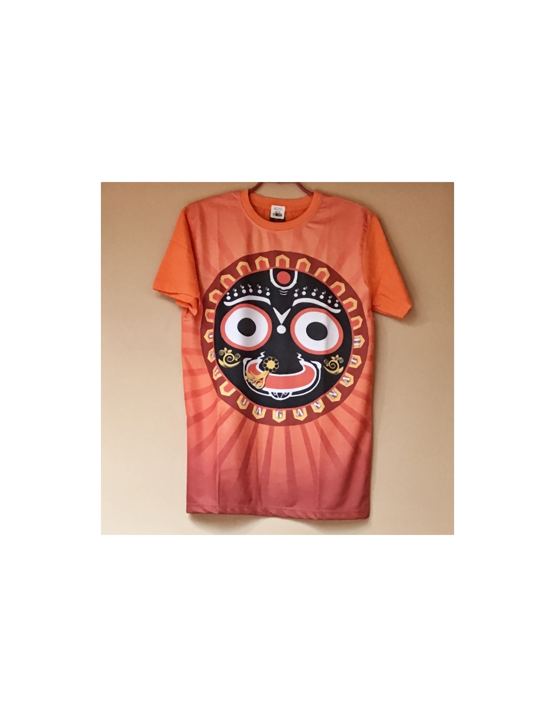 Tričko s velkým potiskem obrazu Krišny nebo Krišny s Rádharání nebo Ugra Nrsimhy nebo Jagannátha. Pevný bavlněný materiál.
