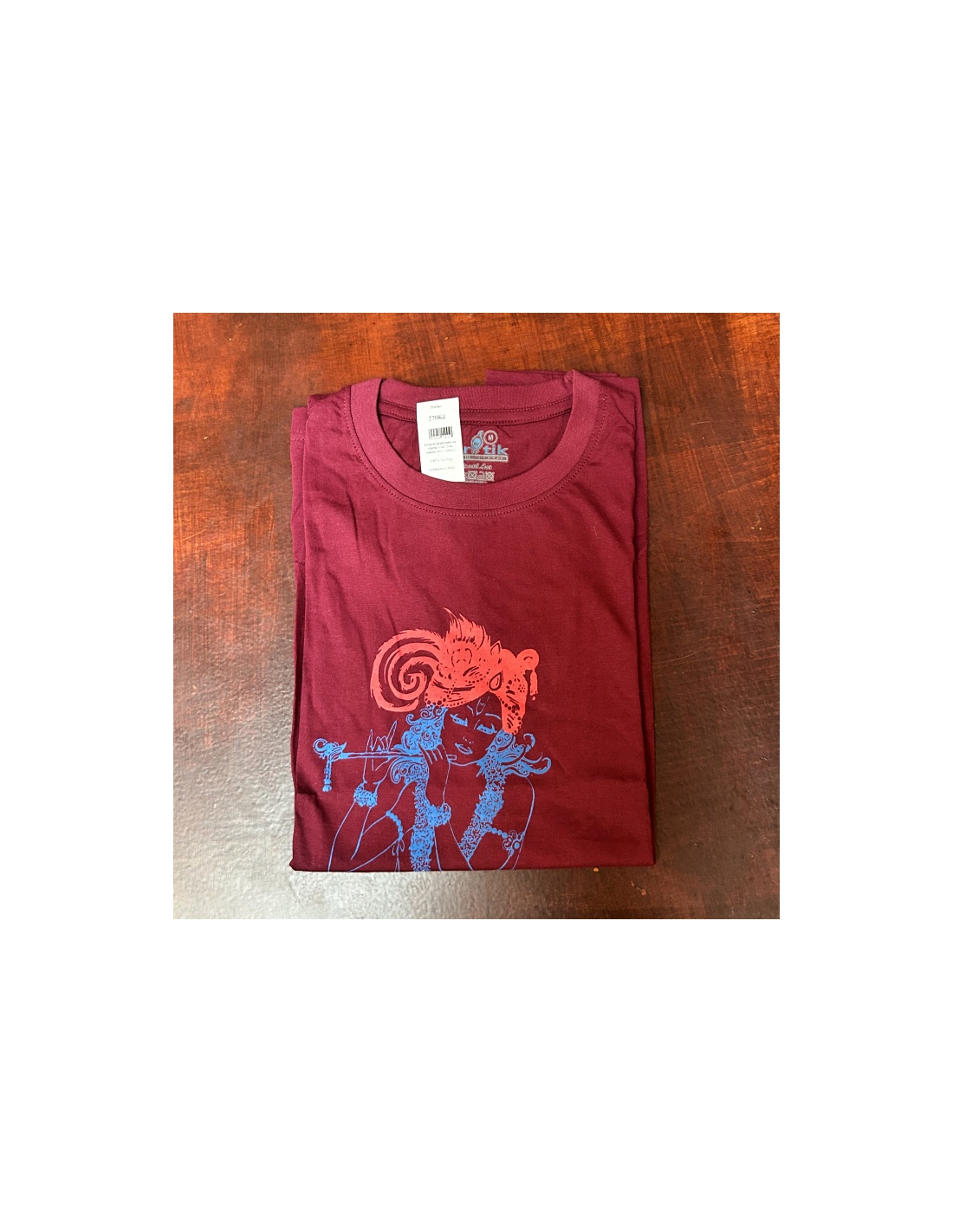 Bavlněné tričko s krátkým rukávem a nápisem Krisnas Tu Bhagavan Swayam. Zadní díl je bez potisku.