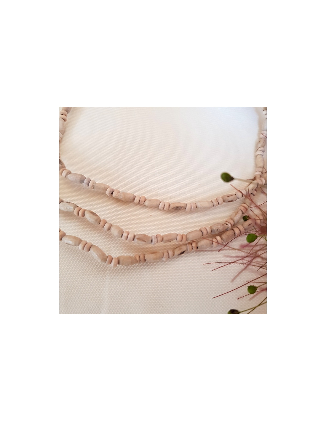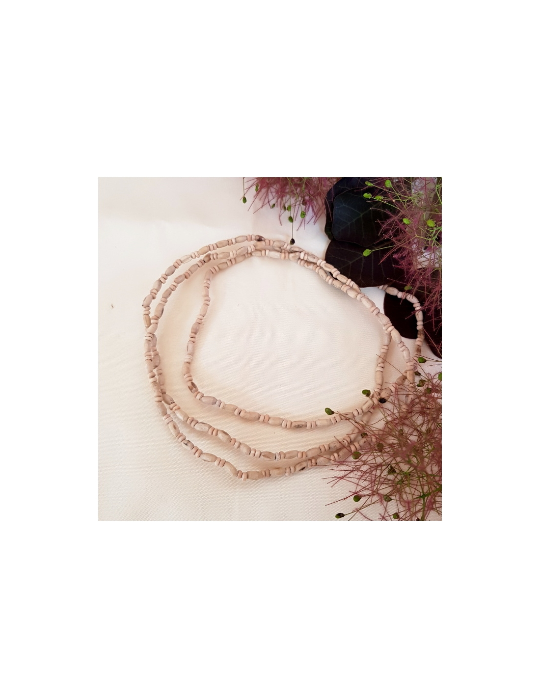Trojřadá kantimála s dřevěnými korálky vyrobená z posvátného keříku tulasí. Ochraňuje.