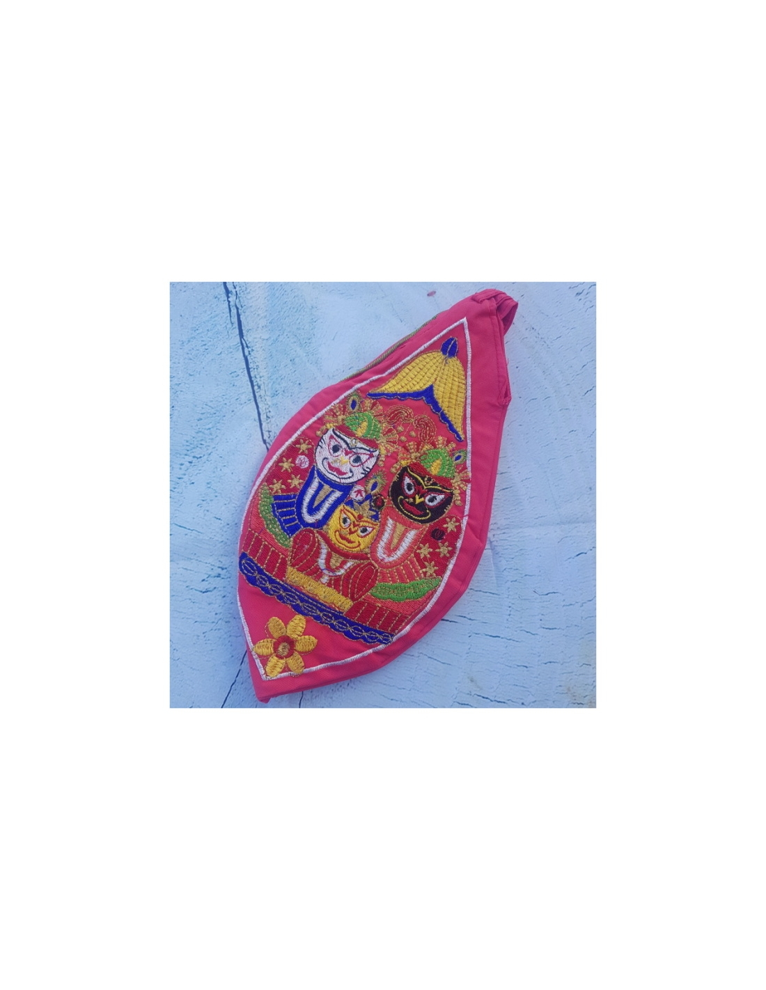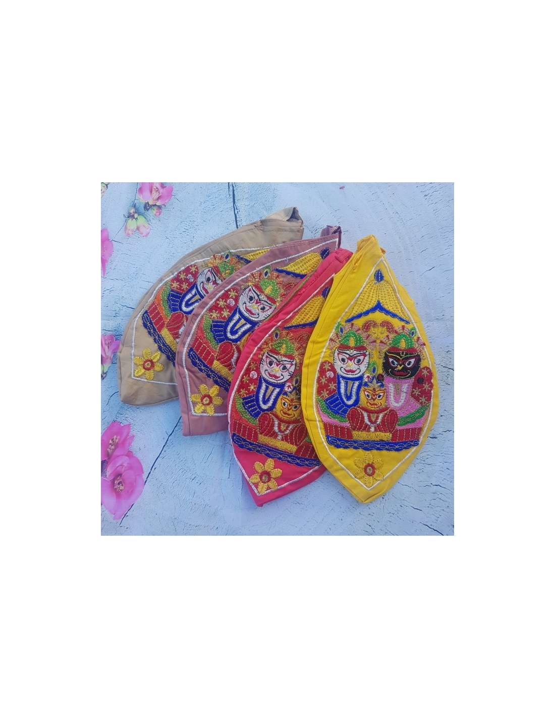 Bavlněný japa pytlík na růženec. Má kapsičku na zip. Z obou stran vyšívaný, zepředu Jagannáth, vzadu Mahá Mantra.