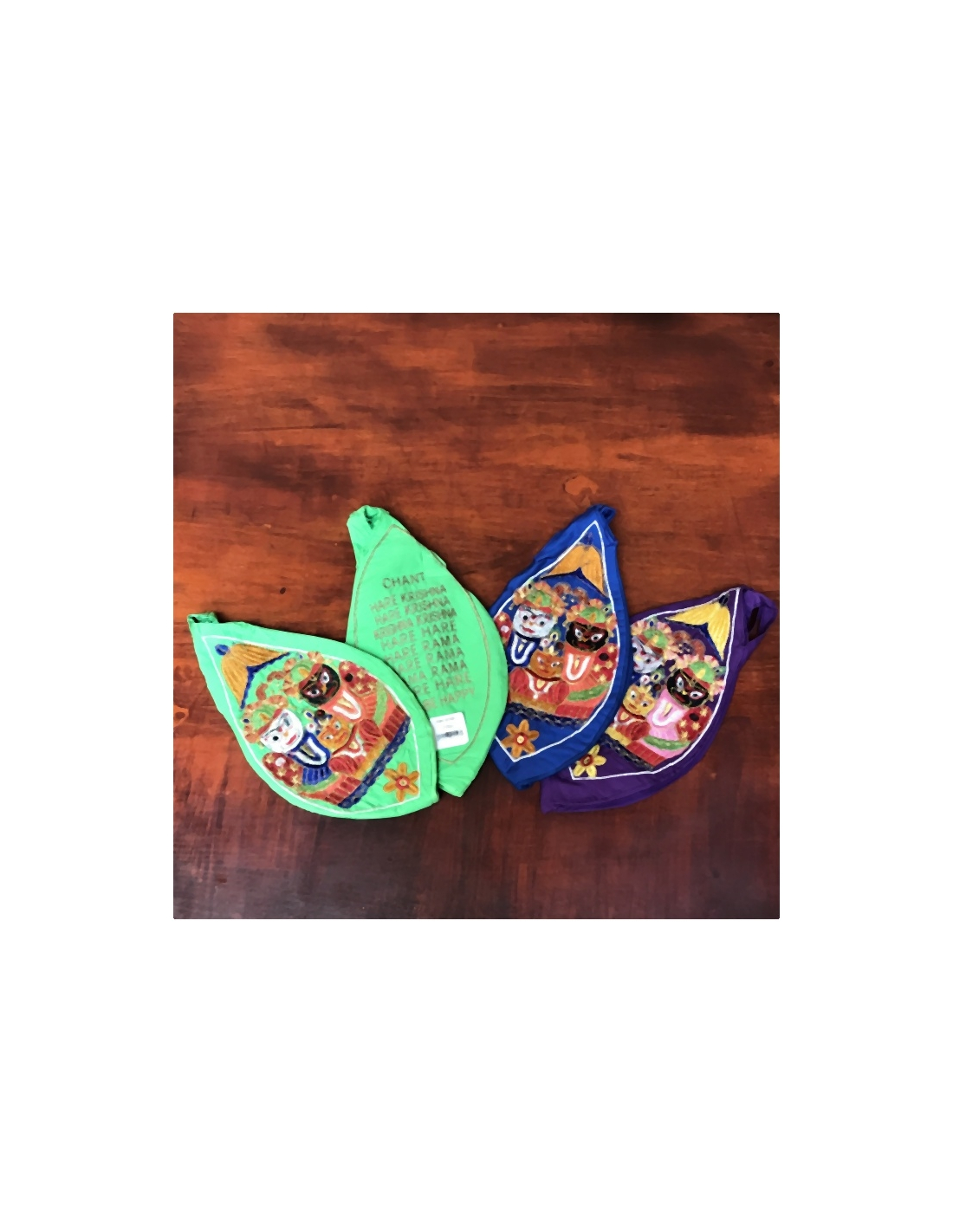 Bavlněný japa pytlík na růženec. Má kapsičku na zip. Z obou stran vyšívaný, zepředu Jagannáth, vzadu Mahá Mantra.