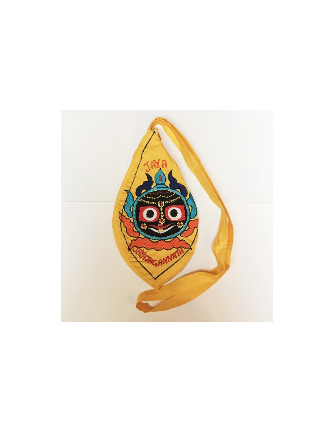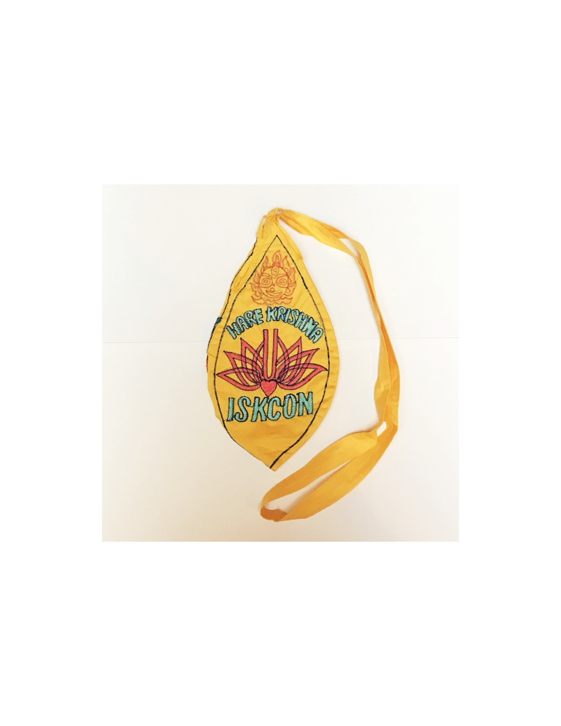 Bavlněný japa pytlík na růženec. Má kapsičku na zip. Vyšívaný z obou stran. Z druhé strany je znak ISKCONu.