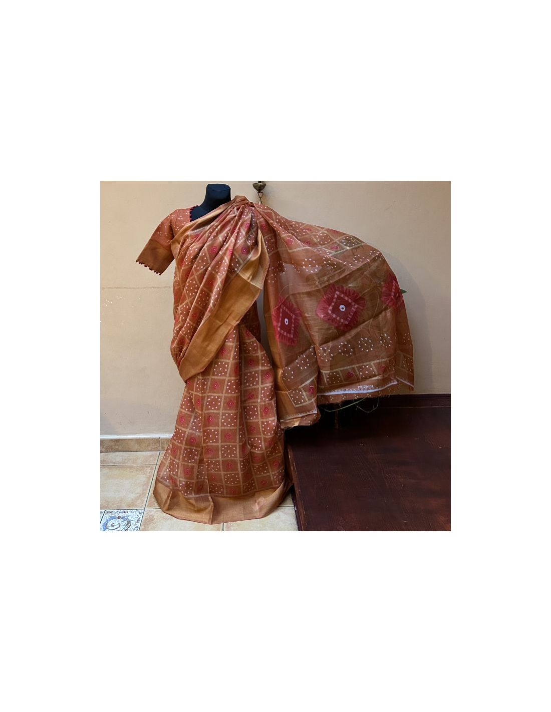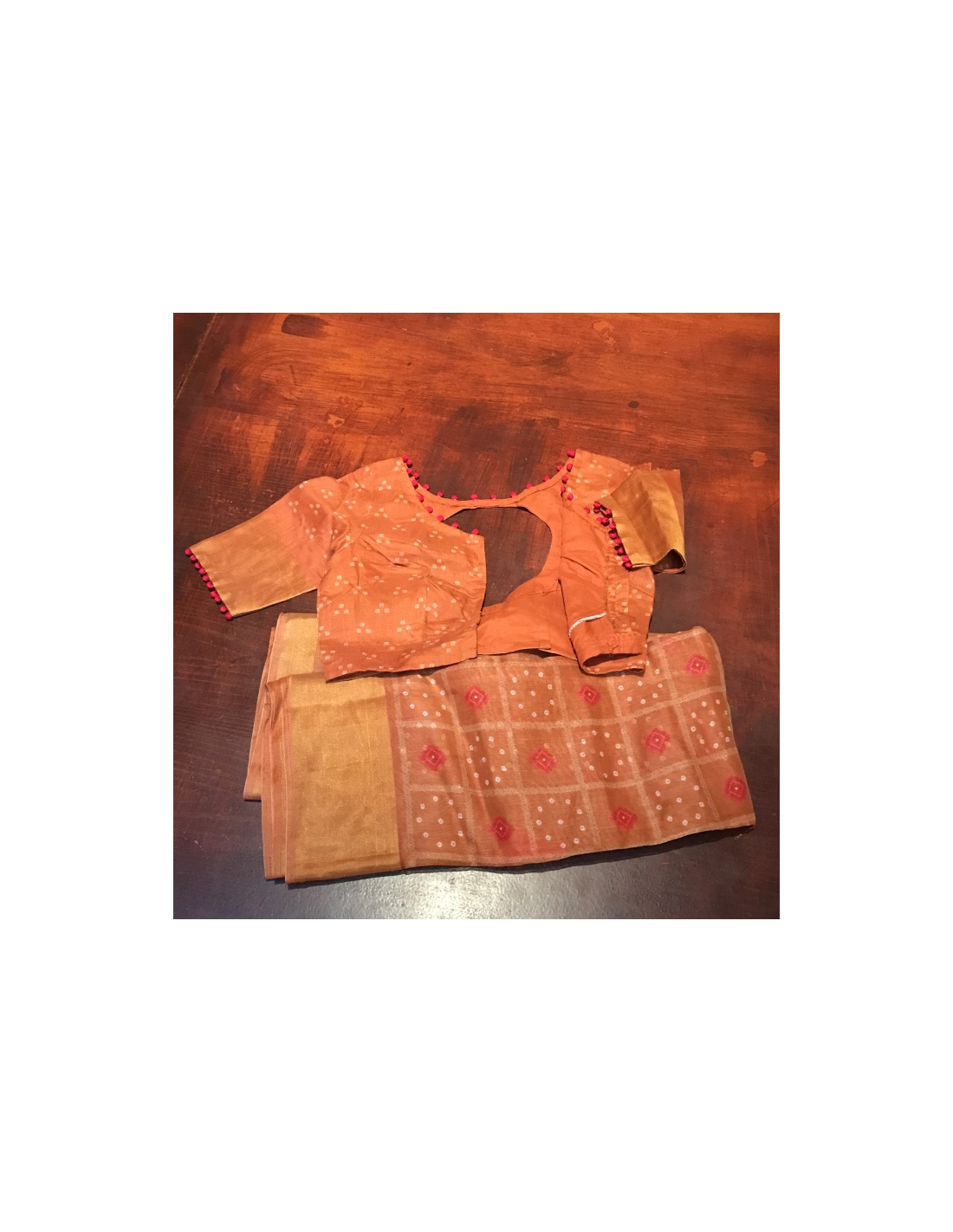 Sárí s pěkně vypracovaným čolí, zapínání vpředu na háčky.